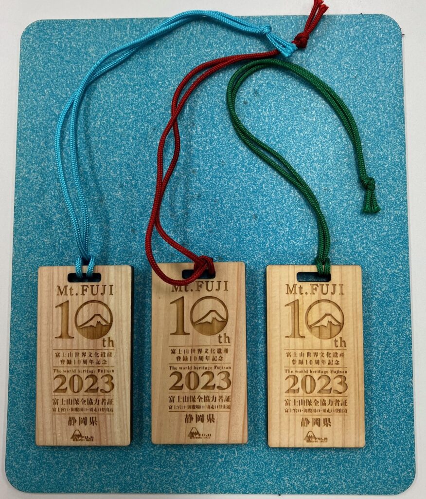 「富士山保全協力金」を払った方へ配布する協力者証(木札ストラップ)
